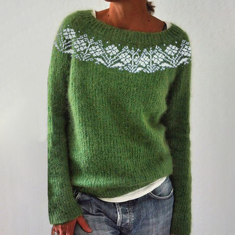 Fair Isle Knit Jacquard Long Sleeve Vintage Sweater