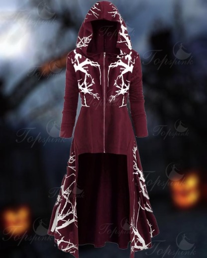 Halloween Cape Hooded Irregular Print Long-sleeve Coat