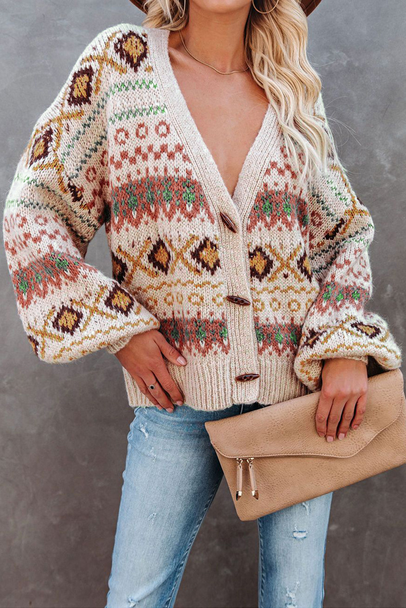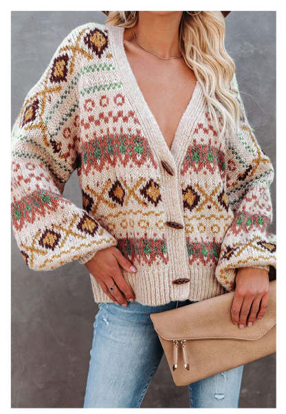 Women's Loose Sweater Cardigan V Neck Boho Knit Cardigan Sweater